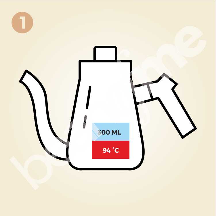 300 ml suyu 94 °C sıcaklığa getiriniz. Eğer elinizin altında ısı ölçeriniz yoksa kaynattığınız suyu üstü açık olarak 45 saniye bekletmeniz yeterli olacaktır.