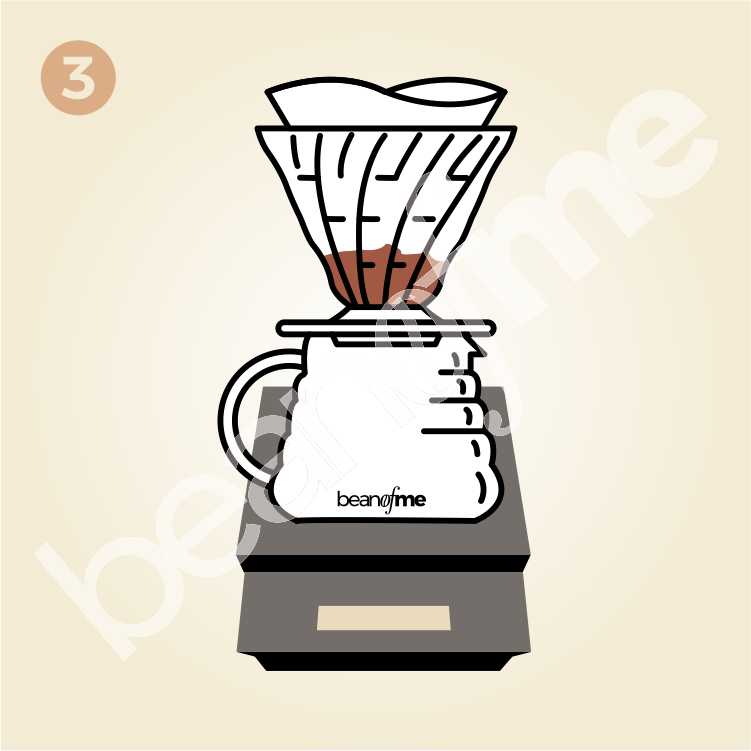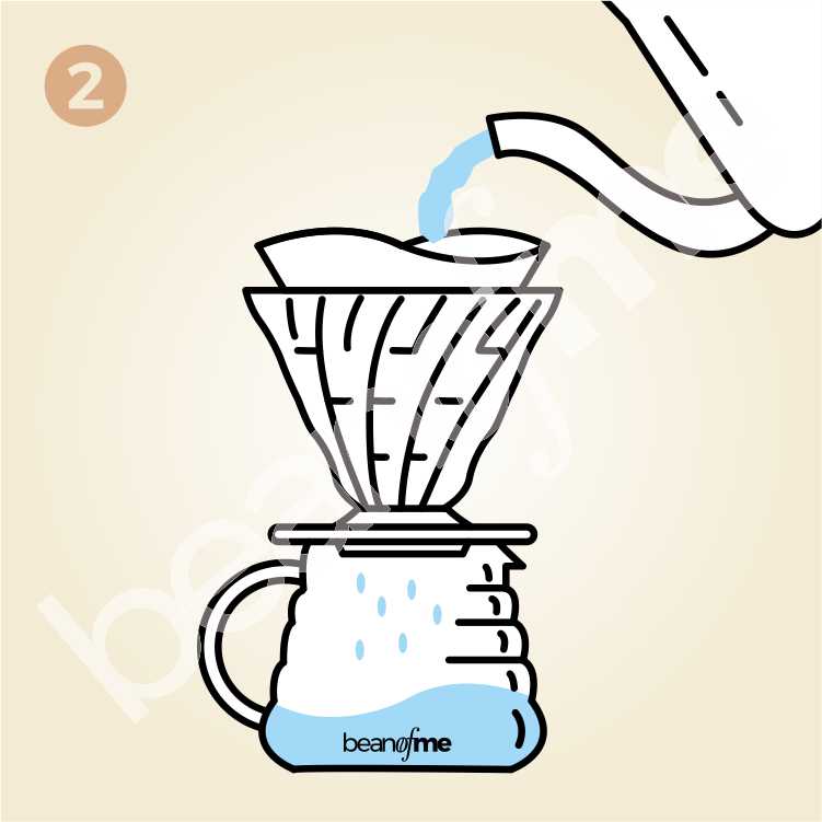 Kağıt filtreyi Hario V60 üzerine yerleştirin ve bir miktar su ile yıkayınız. Bu işlem filtredeki kahvemize geçmesini istemediğimiz tad ve doku kalıntılarını engellemek içindir.