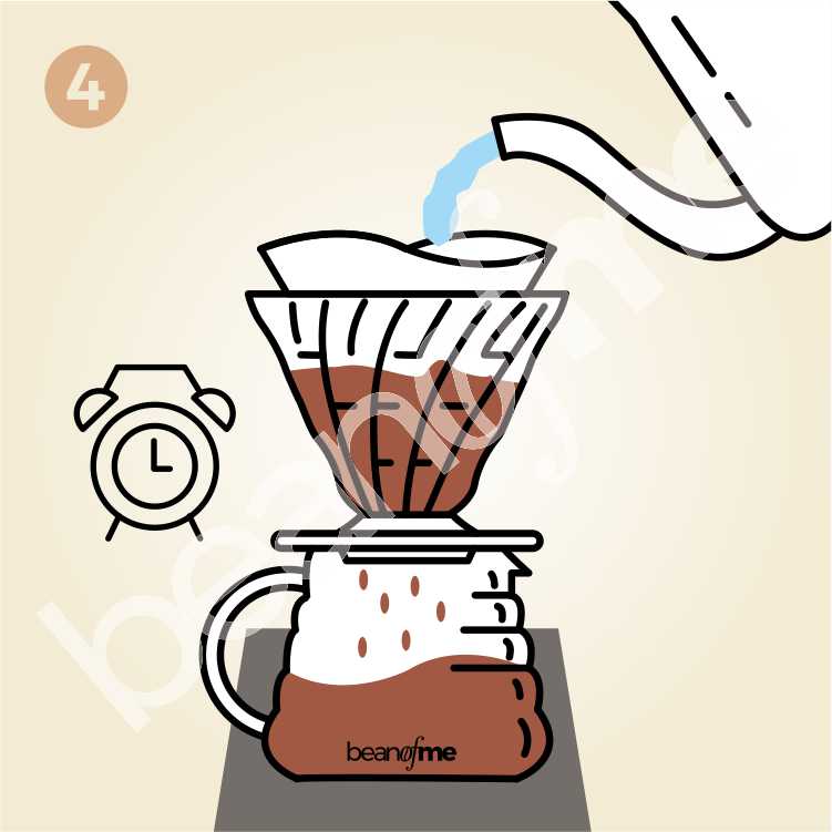 Hario V60 ile ekstraksiyonun toplam süresi 2,5 – 3 dakika olmalıdır. Süre kısaysa kahveniz iri öğütülmüş, eğer çok uzun sürerse de gereğinden ince öğütülmüş demektir.